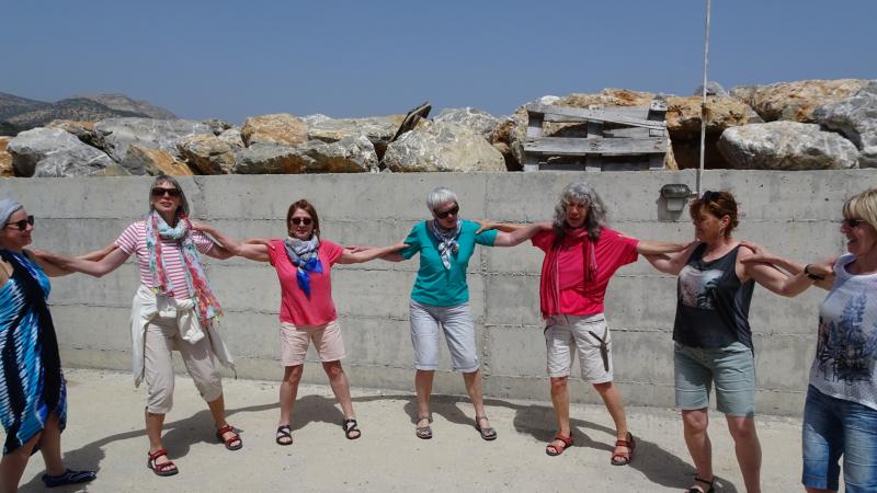 Nach dem lockeren Strandaufenthalt ging es mit dem Boot zurück in den Hafen, wo wir gemeinsam ein schmackhaftes Essen zubereiteten. Mit bester Laune und beschwingt vom schönen Tag holte der Bootsführer schon bald seine Mandoline heraus und spielte ein paar schöne Stücke typisch kretischer Musik – und wie fast immer konnte kaum jemand seine Füße dazu still halten: nach kurzer Zeit stand die gesamte Gruppe auf dem Steg und lernte die ersten Schritte der typisch kretischen Kreistänze – eine wunderbare Erfahrung für alle.
