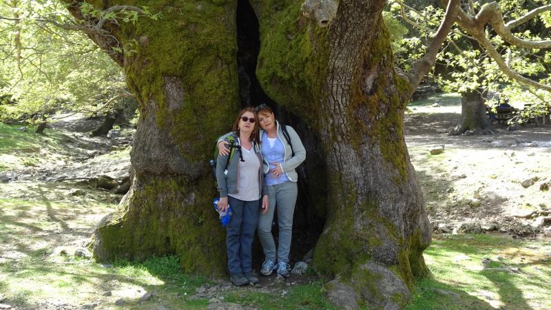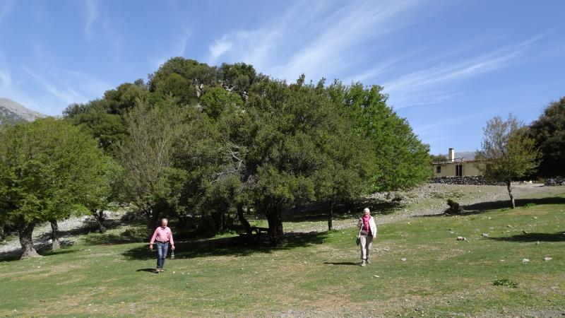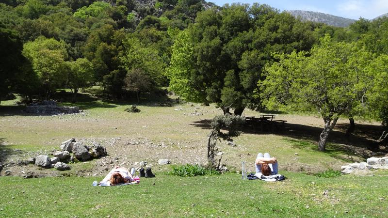 Wie ein kleiner Zauberwald wirkt der magische, mit uralten Platanen bewachsene Platz an dem wir schließlich ankamen. Wir machten hier erst einmal Rast und stärkten uns mit einem leckeren Picknick. Bevor der Großteil der Gruppe wieder den Abstieg antrat, ruhten wir uns noch ausgiebig auf der herrlichen grünen Platanenwiese aus und genossen die besondere Stimmung des Ortes.
